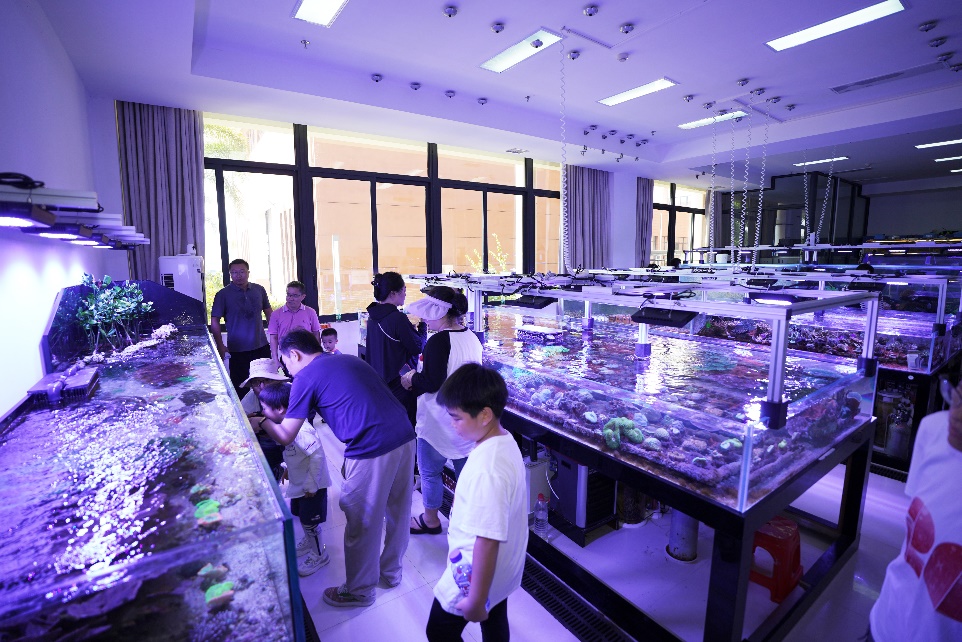 “從大海到星辰”活動的海南分會場在中國科學院深海科學與工程研究所舉辦,總計1800余人到深海所參加了活動。活動期間,向市民開放了工程實驗室、珊瑚礁生態模擬實驗室、海洋生物繁育岸基實驗基地、鯨豚標本館等場館,人們走進工程實驗室,圍繞海試裝置和設備,詢問實驗設備的原理;參觀了珊瑚、硨磲、玳瑁等活體生物,以及大大小小、不同種類的海洋生物標本,并與科研人員展開討論。